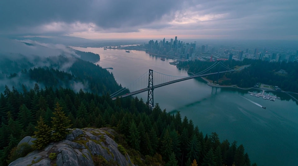 Create a quiet civic icon native to Prospect Point—with respect for the Musqueam, Squamish, and Tsleil-Waututh Nations on whose unceded territories the park sits. Frame views to the First Narrows, Lions Gate Bridge, and skyline; protect trees, soils, and hydrology; and link clearly to Raccoon Trail and Bridle Path.
