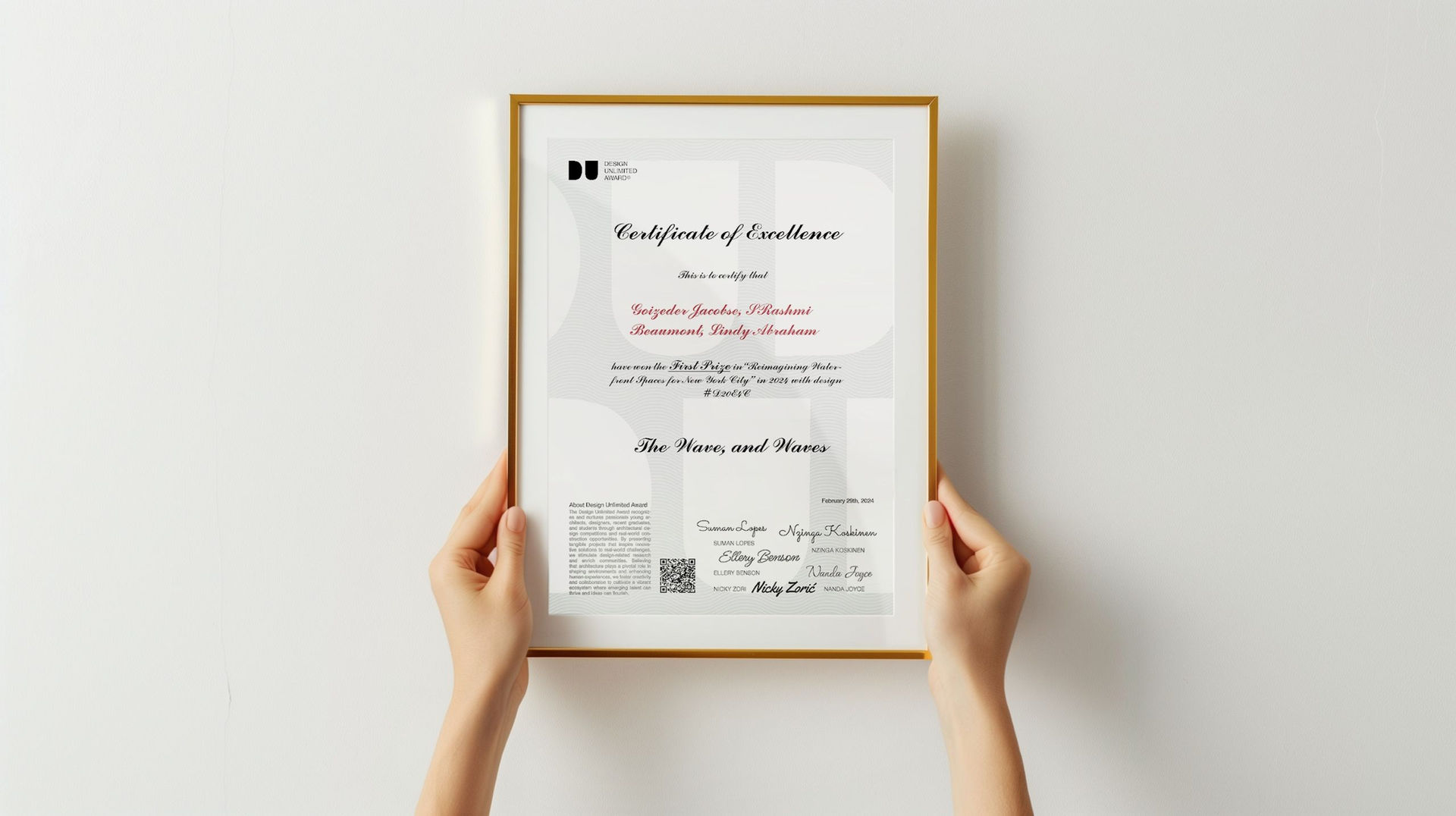All eligible winners will have the opportunity to receive official Design Unlimited certificates in electronic format, acknowledging their achievement. In addition, the winning team is entitled to order a high-quality, beautifully framed physical print of the certificate. This print will be crafted with attention to detail, ensuring it is a lasting and impressive representation of their work.